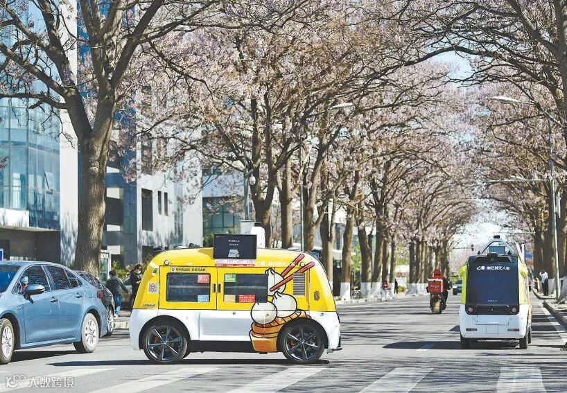 夕阳下,北京市亦庄自动驾驶示范区内,无人配送车与传统车辆有序共行。作为物流“最后一公里”的新兴力量,无人配送车已在多个城市落地运行。
