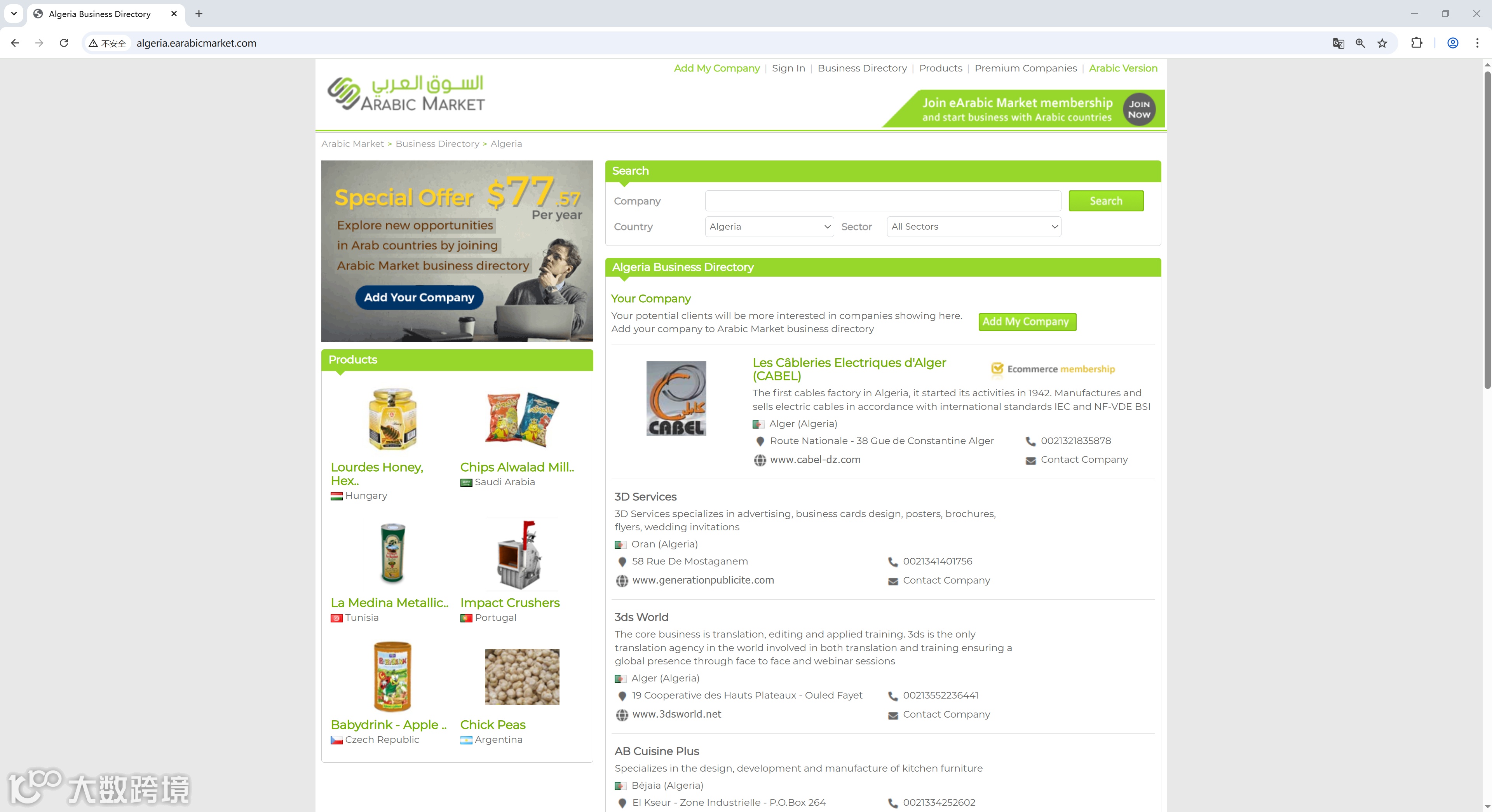 - Algeria Business Directory:由Earabic Market为阿尔及利亚市场打造的B2B(企业对企业)商业目录平台,旨在促进阿尔及利亚与其他阿拉伯国家之间的贸易合作,主要服务于制造商、供应商、批发商和分销商等企业用户。网址:algeria.earabicmarket.com