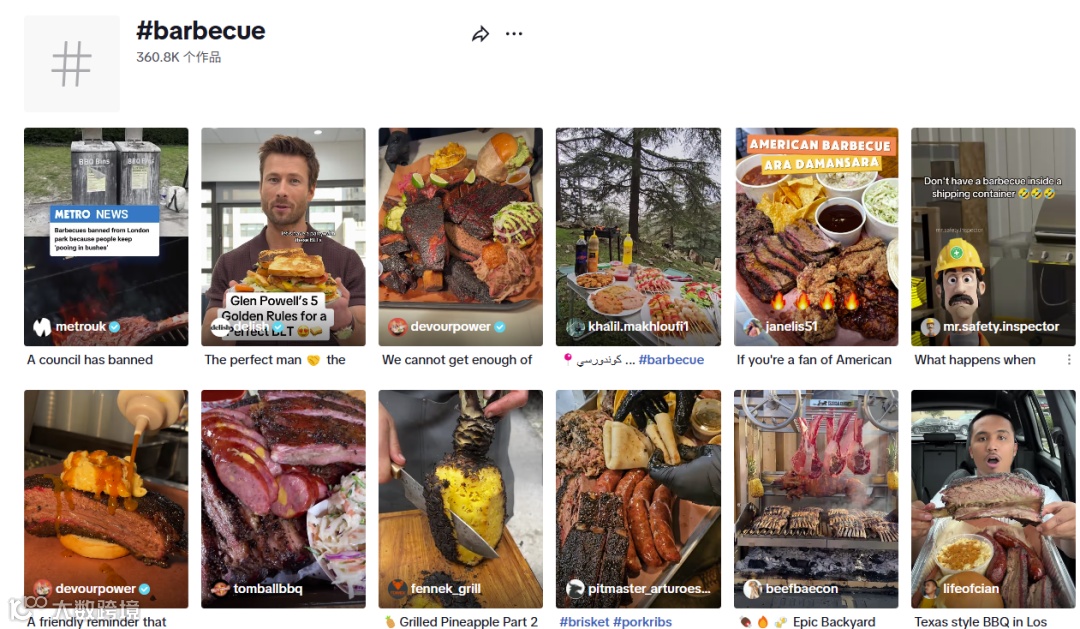 除电商平台售卖外,TikTok上相关烧烤视频也进一步拉动产品销量,采用“场景化营销”模式吸引更多潜在用户。#barbecue话题下视频超36w条,单条视频点赞超十万甚至百万。