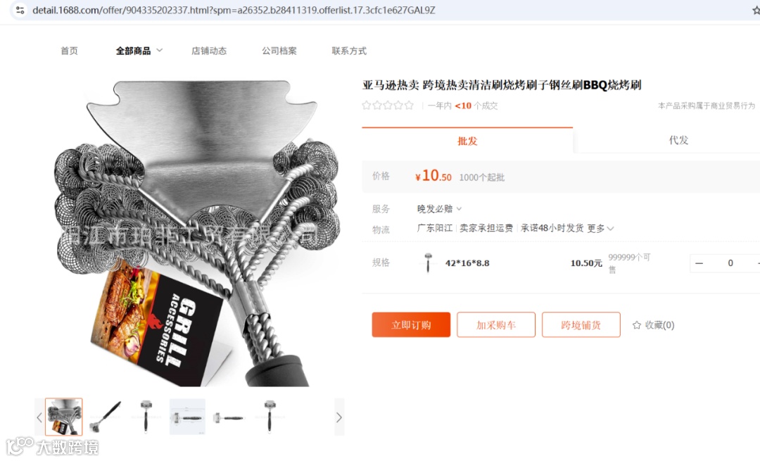 图源:1688如此火爆的烧烤刷在中国卖家眼中占据了优势,全球约80%的烧烤刷产自中国,浙江、广东等地拥有成熟的五金和厨具供应链,可为卖家提供高性价比OEM/ODM产品(适合中小卖家),或者一些定制化设计(如品牌LOGO、多件套组合)。