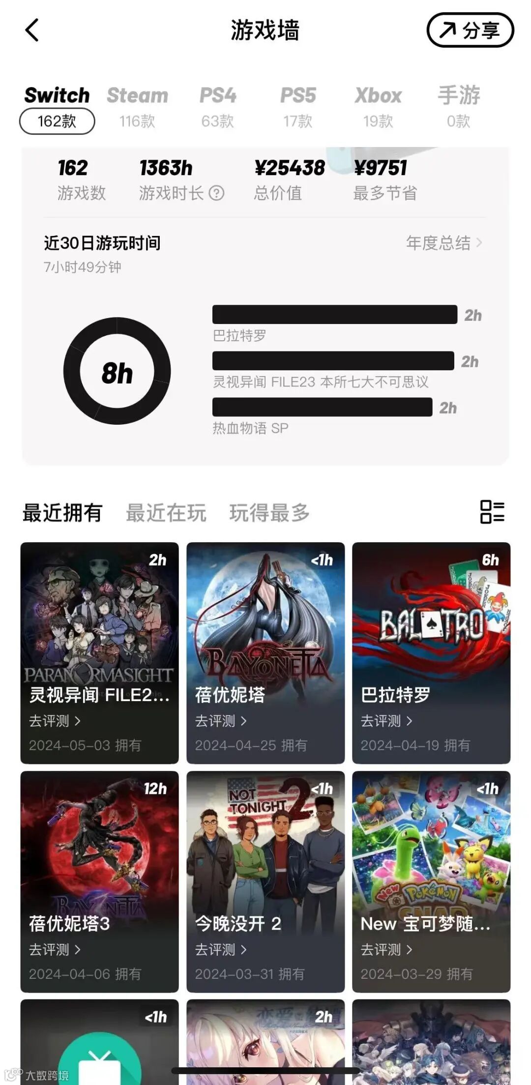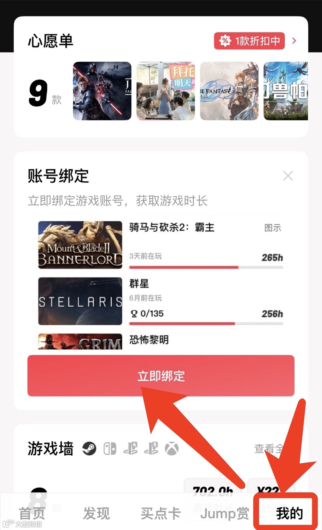 Jump App支持绑定任天堂、Steam、PS、Xbox等多平台账号,一站式查看各平台游戏时长,操作便捷高效。