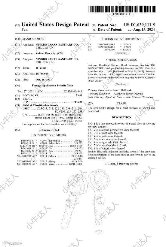 经查询,这款产品于2021年10月28日在美国进行外观专利申请的提交,于2024年8月13日获得了公告。