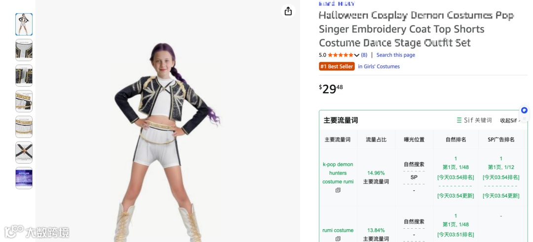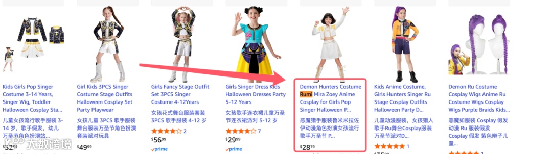 果不其然这个产品与IP《K-POP:猎魔女》的造型非常相似。该ASIN也在五点描述中写道精湛的工艺:这套服装的灵感来自电影角色,包括标志性电影角色服装的所有配饰。每一个细节都经过精心制作,让女孩仿佛置身于电影中。下面就仔细剖析下这个产品,做对了什么成为了Best Seller。