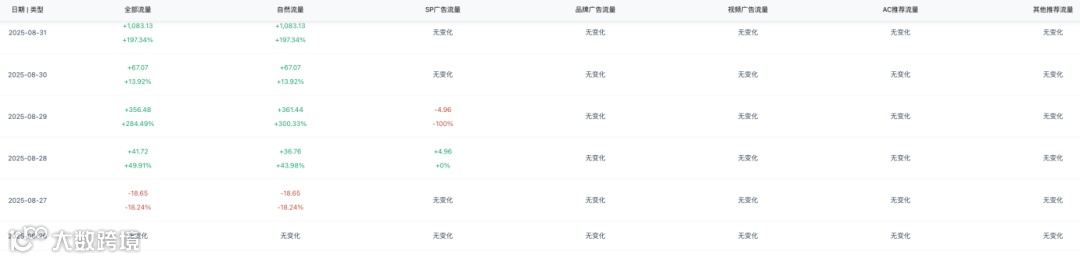 这是最近7天的流量结构,我们更关心的是新品上架后的流量变化是如何。使用Sif关键词广告透视仪下的流量时光机按天查询,因为这个产品上架时间很短。如果上架时间长的产品建议按周查询。