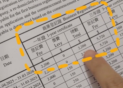 - 商业登记证费用:2,200港币