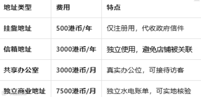 - 独立商用地址:配备独立水电账单,月租金普遍在7000港币以上,成本较高。