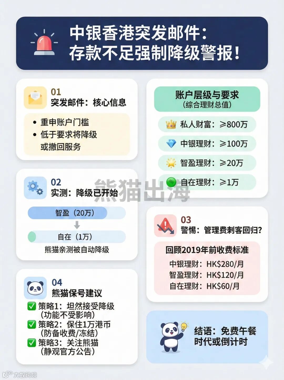 大事不妙!继汇丰2026年要恢复收“管理费”的动作后,中银香港 (BOCHK) 这几天也开始有了大动作!