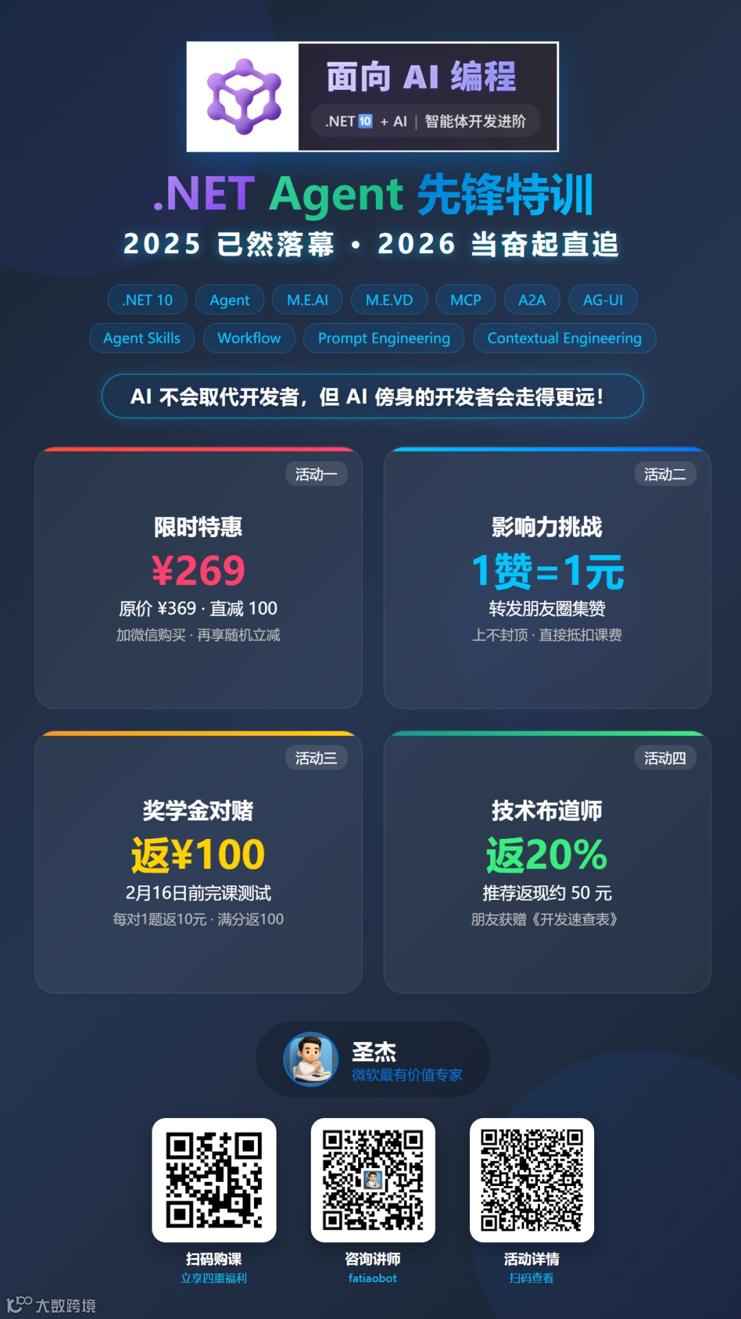 随着 AI Agent 技术的快速发展,如何让 Agent 具备可复用、可扩展的专业能力成为一个重要课题。Agent Skills 规范提供了一种标准化的方式来定义和分发 Agent 技能,而 Microsoft Agent Framework (MAF) 则提供了构建 AI Agent 的强大基础设施。