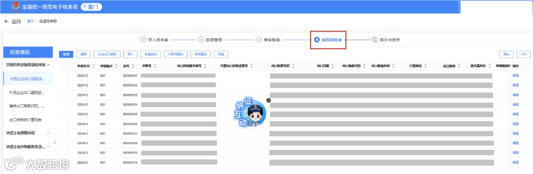 4.点击【填写明细】和【退税申报】可分别跳转至“填写明细表”和“提交申报表”界面。