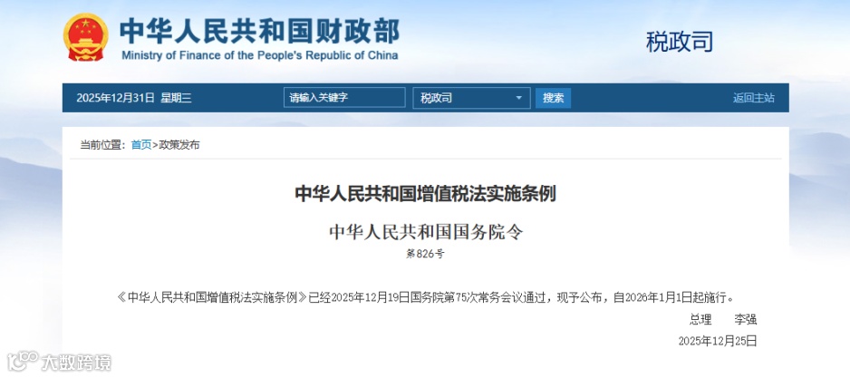 《中华人民共和国增值税法》(以下简称《增值税法》)自2026年1月1日起施行!