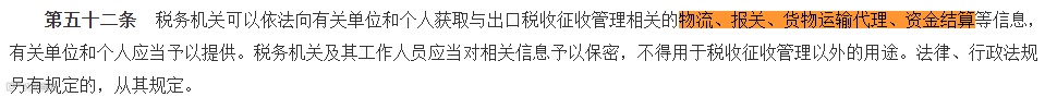 税务机关可依法获取物流、报关、资金结算等信息,强化税务机关在出口环节的征管权力。