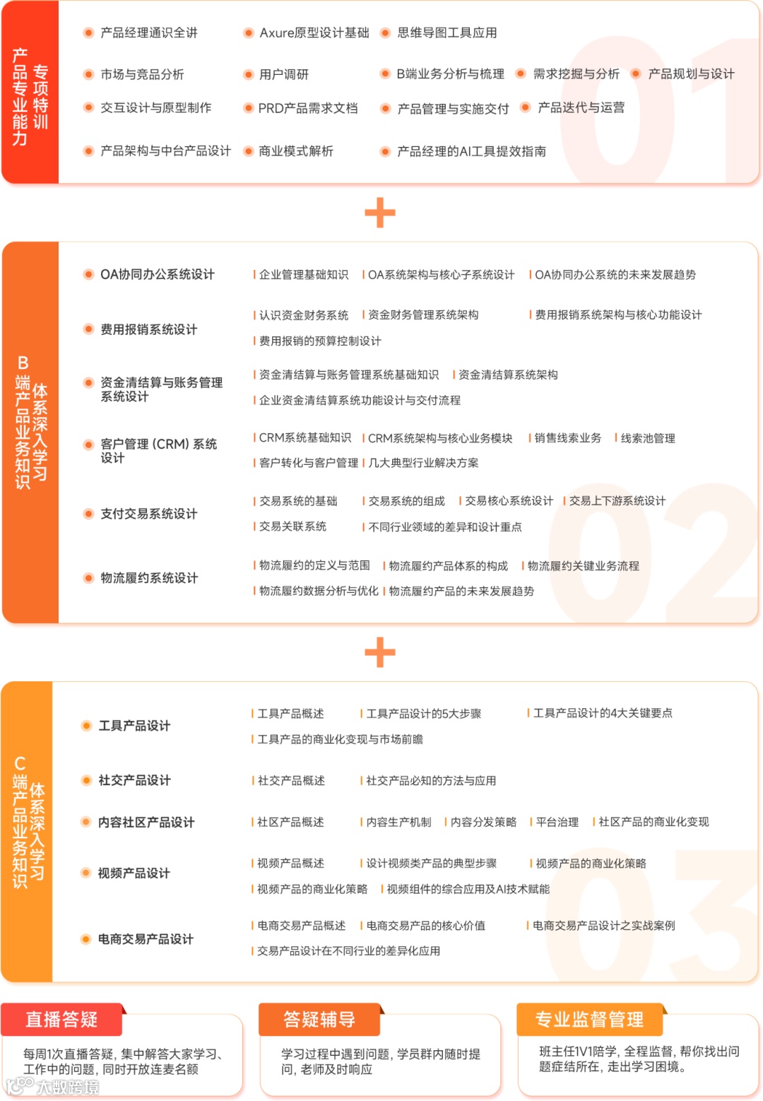 ▶ 职业体系课,含私教陪跑及细分领域专项课程,构建完整知识框架;
