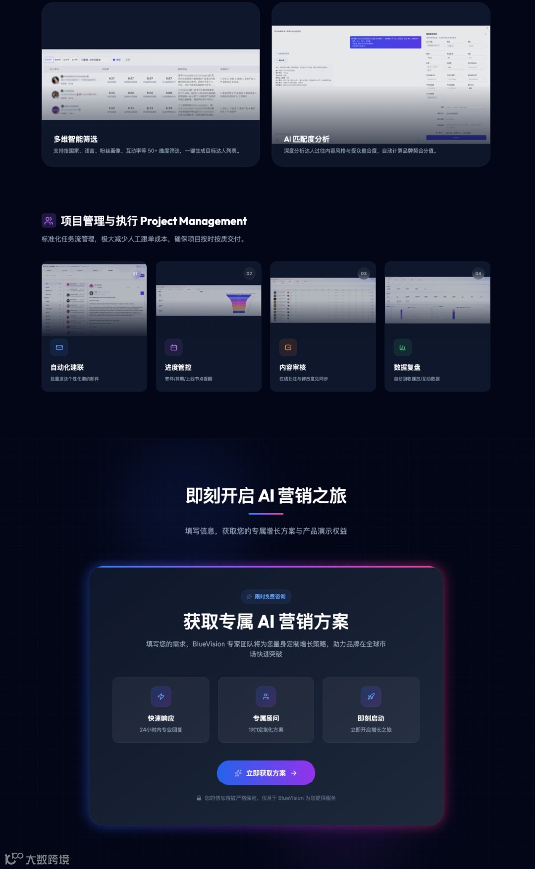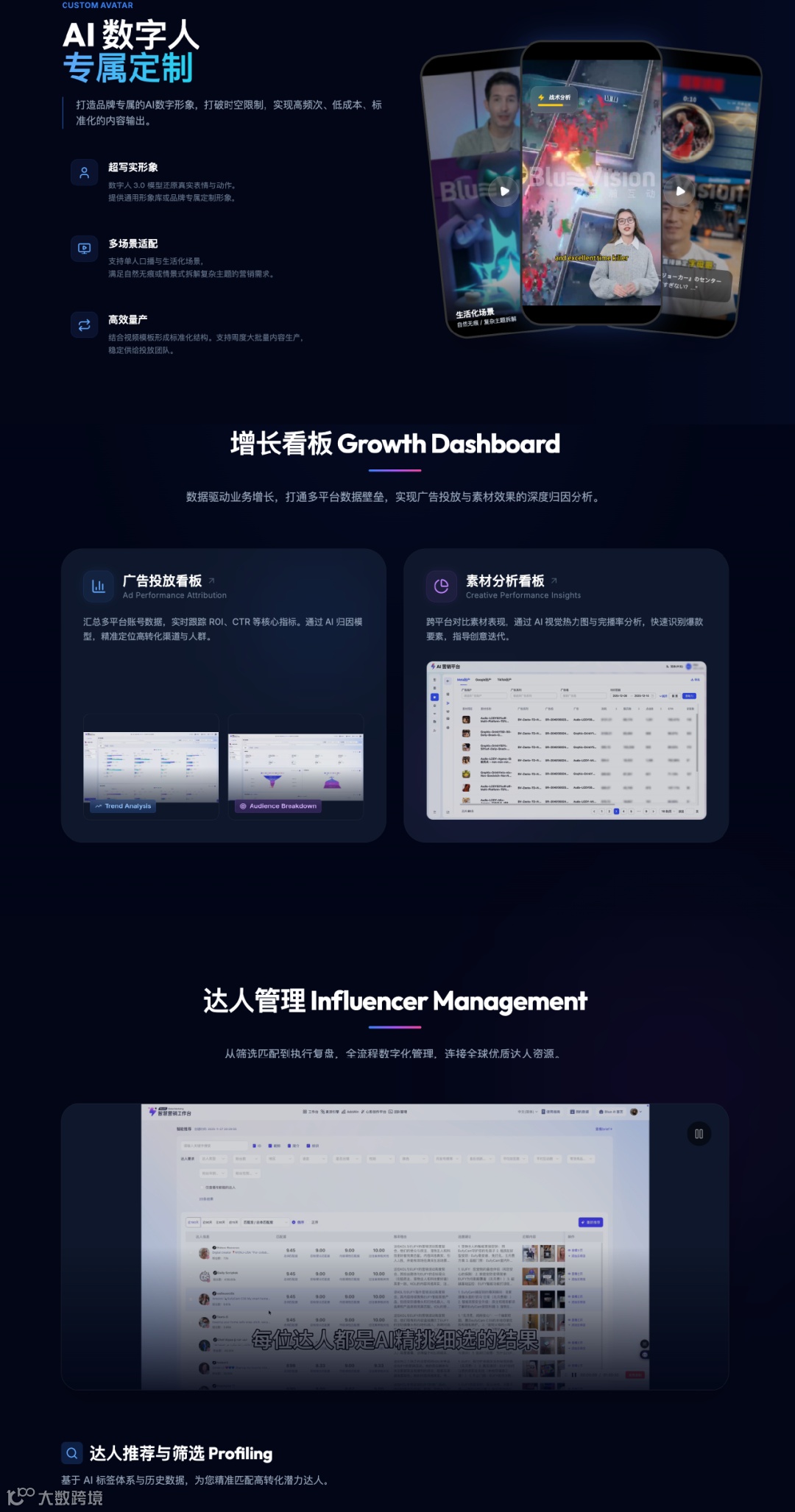 蓝瀚互动此次升级的AI服务体系,覆盖从前期市场分析到后期效果归因的完整营销闭环。通过AI驱动的多维度数据建模,实现对区域市场趋势、用户行为偏好的高效洞察;在创意层面,支持图文、视频等内容的自动化生成与本地化适配;结合虚拟数字人技术,提升内容产出效率与互动体验;并通过智能算法匹配高契合度海外达人,优化投放组合与传播路径。