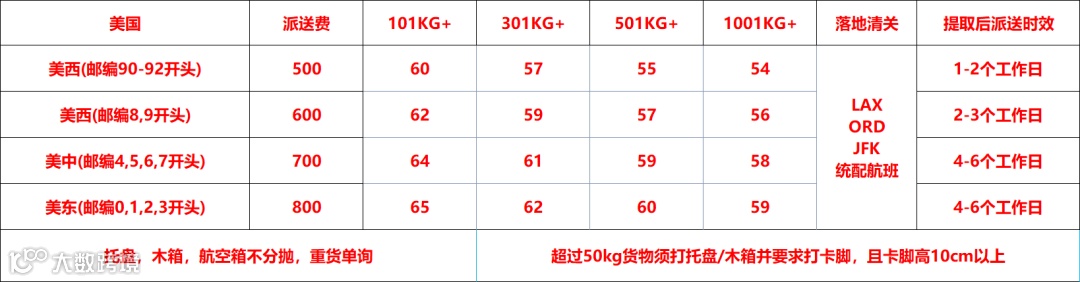 美国空派-超大件 卡车派送 价格表