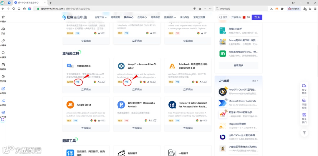 仅通过审核的V3插件可入驻紫鸟生态中心,享有专属展示位,直连海量精准卖家用户,实现高效转化与业务增长。
