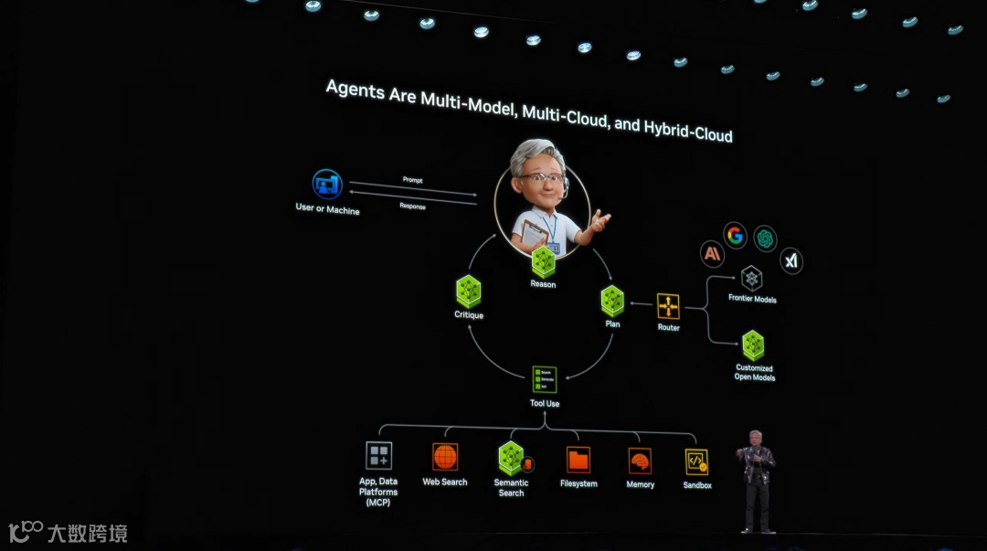 黄仁勋指出,当前正经历两次并行的平台级跃迁:一是从传统计算向AI原生计算演进,二是软硬件全栈底层重构。AI已成为新计算底座,软件开发、应用生成与运行方式均发生根本性变革。