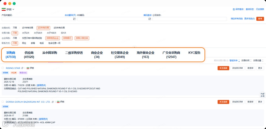 输入”伊朗“目标国家,直接筛选出高效挖掘有价值的采购商