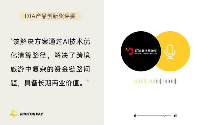 9月10日,2025环球旅讯峰会在上海隆重启幕,备受业界关注的“2025 DTA数字旅游奖”同期揭晓。凭借为旅游企业打造的全球支付解决方案,PhotonPay光子易从众多优秀参赛案例中脱颖而出,荣获“产品创新赛道”最高荣誉——金奖。