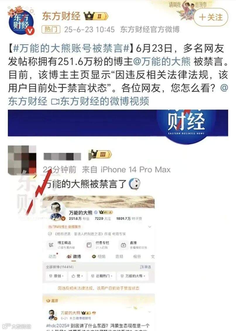 值得注意的是,“万能的大熊”并非普通KOL。其多次因散布不实言论被平台封禁,曾因联想相关争议败诉,亦被美的中止合作。此类履历并非“黑历史”,而是活跃于社交记忆中的负资产。