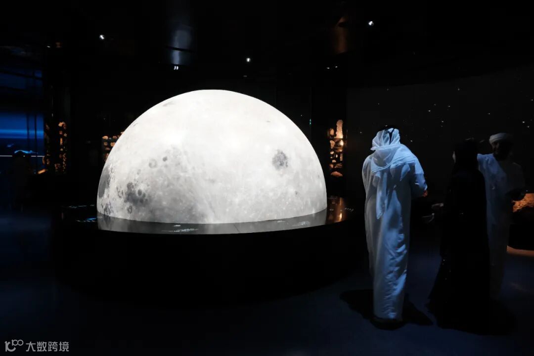 一侧延伸展陈阿联酋在天文与航天领域的探索成果,体现本土科技发展脉络。