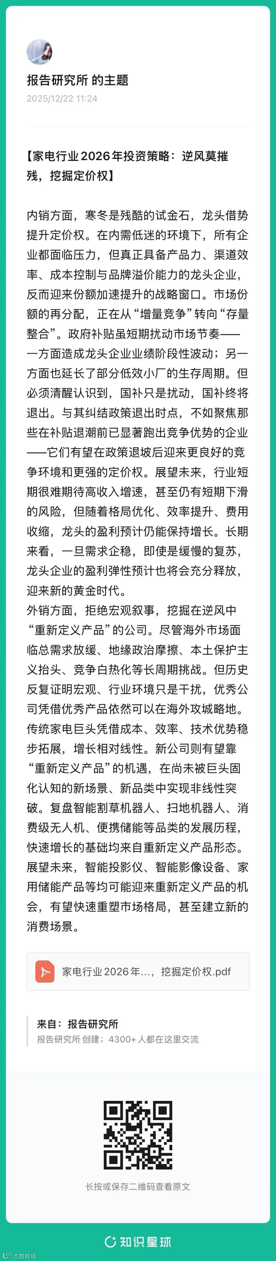 子板块分化明显:零部件涨幅居前,受益于机器人等新兴领域需求扩张;黑电、厨电、白电等传统板块相对疲软。个股中,三花智控、亿田智能、科沃斯表现领先。