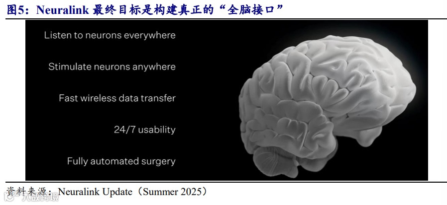 开源证券研报指出,Neuralink的规模化量产计划与全自动手术方案具有双重里程碑意义——既推动脑机接口从“医疗试验工具”迈向“可普及产品”,也为未来与特斯拉Optimus人形机器人协同奠定基础。