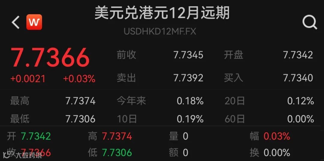 以1亿美元、1年期付款需求为例,1月6日盘中1年期USDHKD远期报价为7.7366。