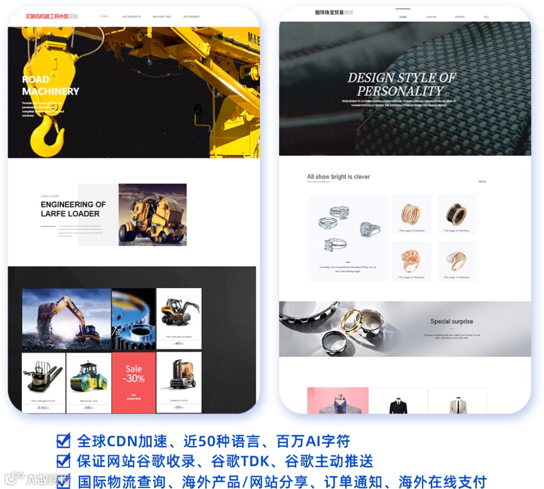 适用场景:外贸初创企业、SOHO个体户,无技术背景且重视页面呈现效果。