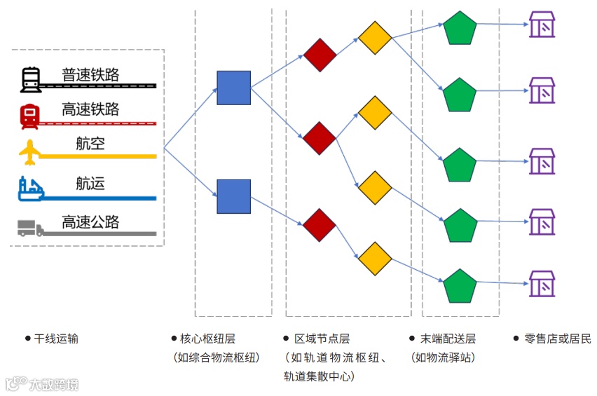 其次,在区域节点层,需要聚焦地铁物流网络与当地产业与物流集群覆盖。一方面,瞄准物流园区、产业园区密集的区域,优先选择站点周边1~3公里内聚集3个以上大型物流企业或产业集群的线路。另一方面,考察区域内是否有稳定且规模化的货运需求,如电商仓储、制造业原材料运输等,同时站点需具备一定的装卸空间和接驳条件。以天津地铁的网络布局为例,可以在物流园区密集区域,如空港经济区、宁河物流园等设置地铁站点,作为区域配送中心,覆盖周边企业货运需求。