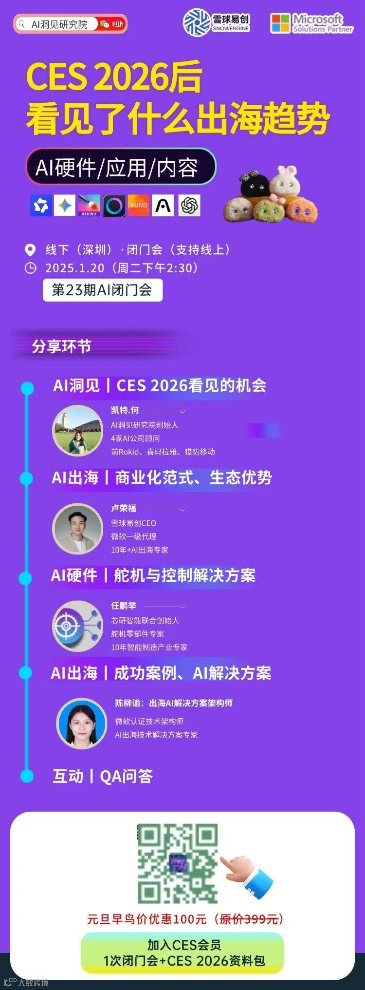 ✅ 一次闭门会:CES 2026过后,我们看到什么出海机会