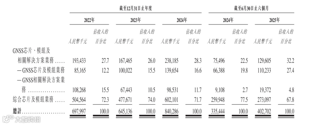 尤其值得关注的是业务结构问题。2025年上半年,华大北斗约67.8%的收入来自综合芯片及模组业务。这部分业务本质上是第三方芯片分销,毛利率极低,长期徘徊在3%左右。相比之下,自研GNSS芯片业务收入占比仅为32.2%。需要注意的是,该业务毛利率呈明显下降趋势,数据表明,其毛利率从2022年的36.0%降至2024年的27.3%