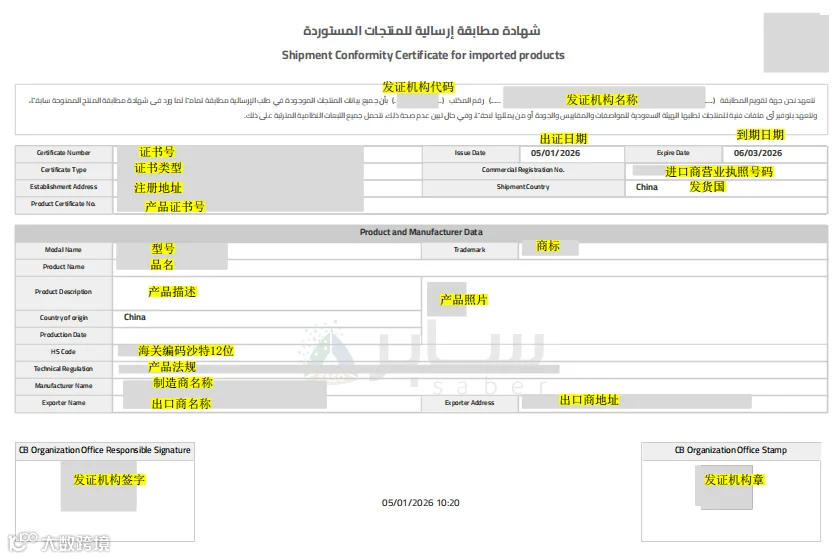 SABER(Saudi Product Safety Program)由沙特标准局(SASO)主导,是沙特海关实施进口管控的关键机制。其核心成果为装运符合性证书(Shipment Conformity Certificate,简称SC证书),用于证明当批货物符合沙特技术法规与安全要求,避免被扣留、退运或销毁。
