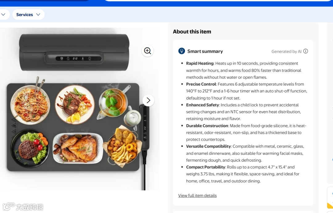 五点冗杂的内容被AI总结成了三个要点。当然不仅仅如此,在搜索结果页上,亚马逊也同样突出了产品特点