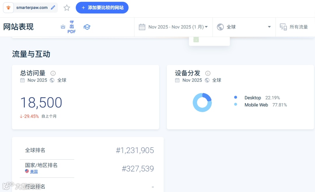 宠物品类中的独立站案例:SmarterPaw 网站与流量结构解析