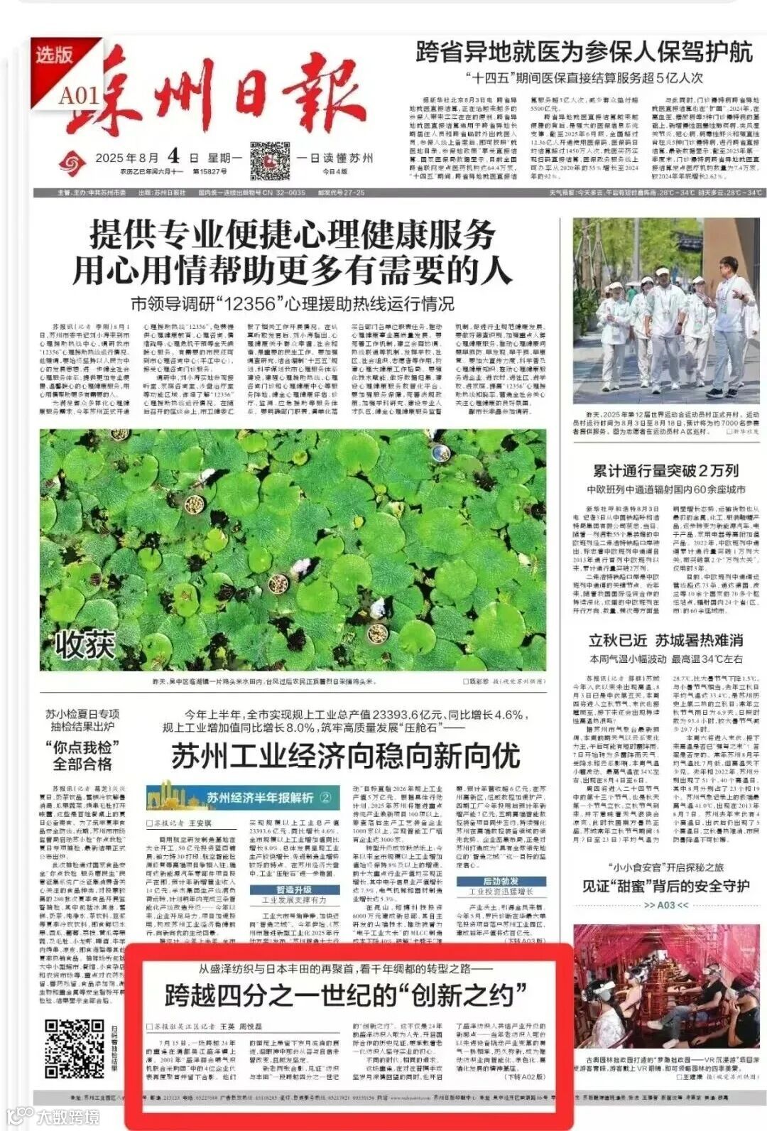 《苏州日报》多次在头版聚焦盛泽纺织产业转型升级,从“一根丝”出发,探析技术创新密码,推动产业链整合,构建可持续发展的纺织服装生态圈。