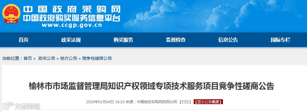 榆林市市场监督管理局知识产权领域专项技术服务项目竞争性磋商公告