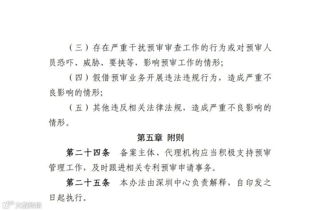 - 干扰或不配合专利预审相关工作。