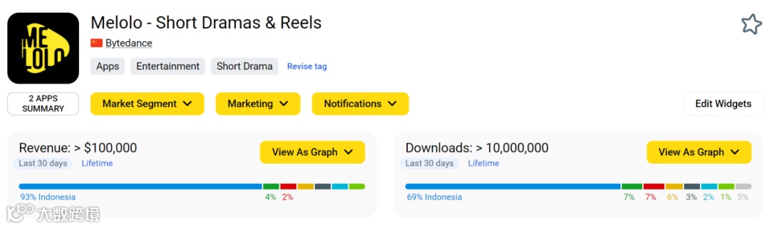 2024年11月,字节跳动面向印尼、菲律宾等东南亚市场推出首款海外短剧应用Melolo。该平台采用免费模式,内容以译制剧为主,辅以少量本土化剧集。截至2025年2月,Melolo已覆盖东南亚、南美、欧洲、日韩等30多个国家和地区,双端下载量突破132万次。