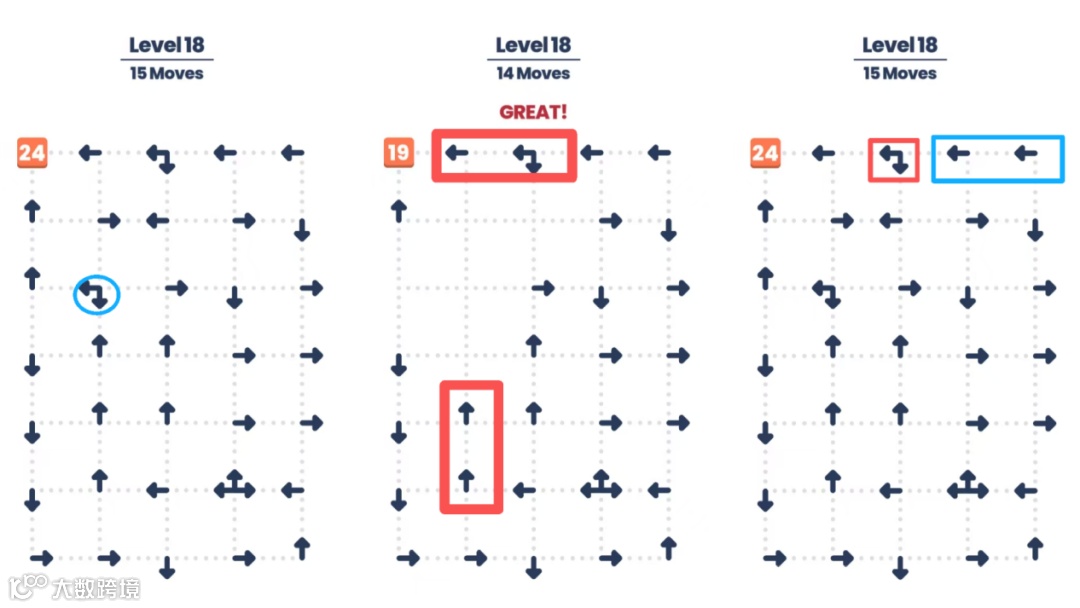 从上文可见,初期第一层的难度,就在单步数批量挪箭头规模的逐渐削减。