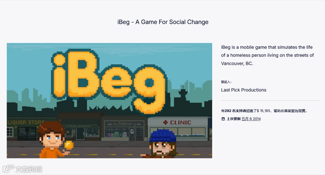 为了关注现实中大量无人关心的无家可归者,温哥华开发者Chris Worboys在2013年接受PopMatters采访时表示,其开发的《iBeg》,一款模拟流浪汉乞讨生存的游戏,并非单纯的创意猎奇,而是基于他在温哥华街头的真实观察以及自身的经济焦虑。