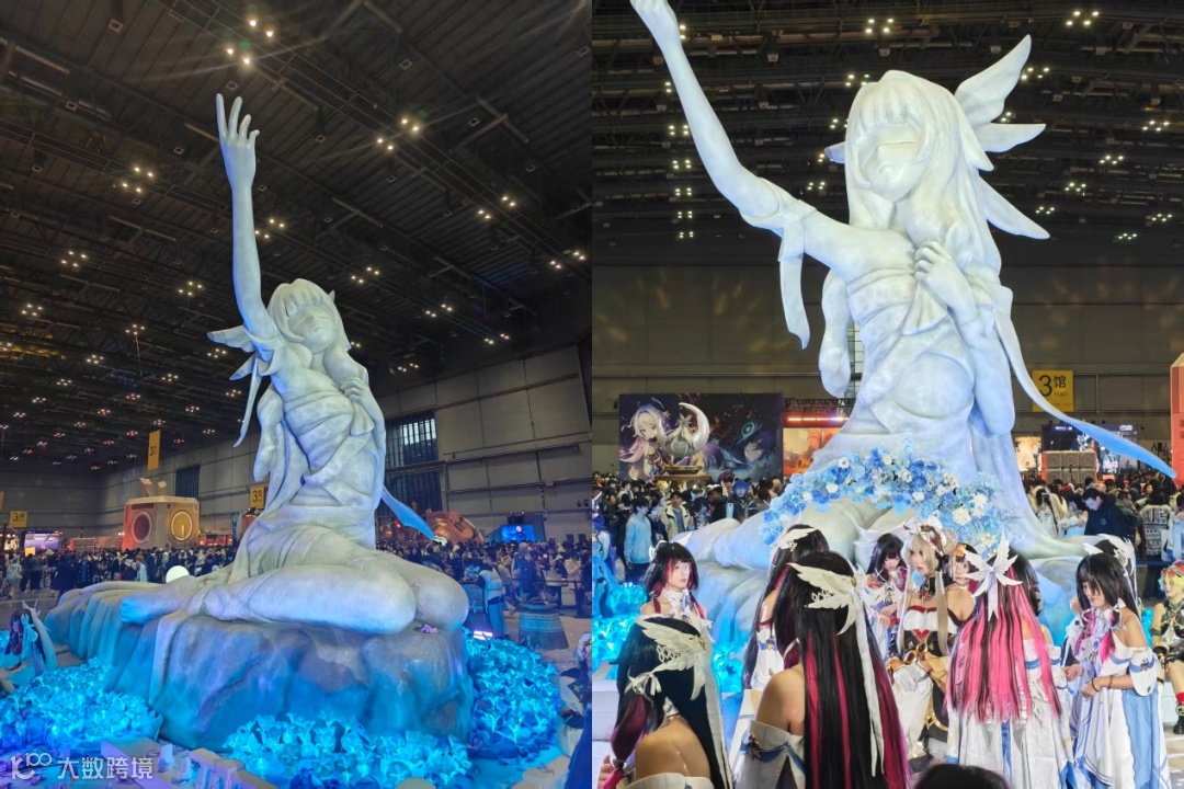 最引人瞩目的自然是一进场馆就能看到的“少女哥伦比娅”的巨大雕塑,这个雕塑基本完美复刻了游戏中的那尊少女雕塑,也是这次Fes展上最热门的打卡点。