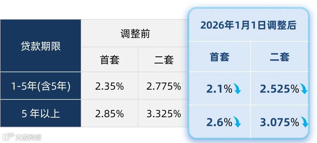 首套住房:5年以下(含5年)利率从2.35%降至2.1%,5年以上利率从2.85%降至2.6%。