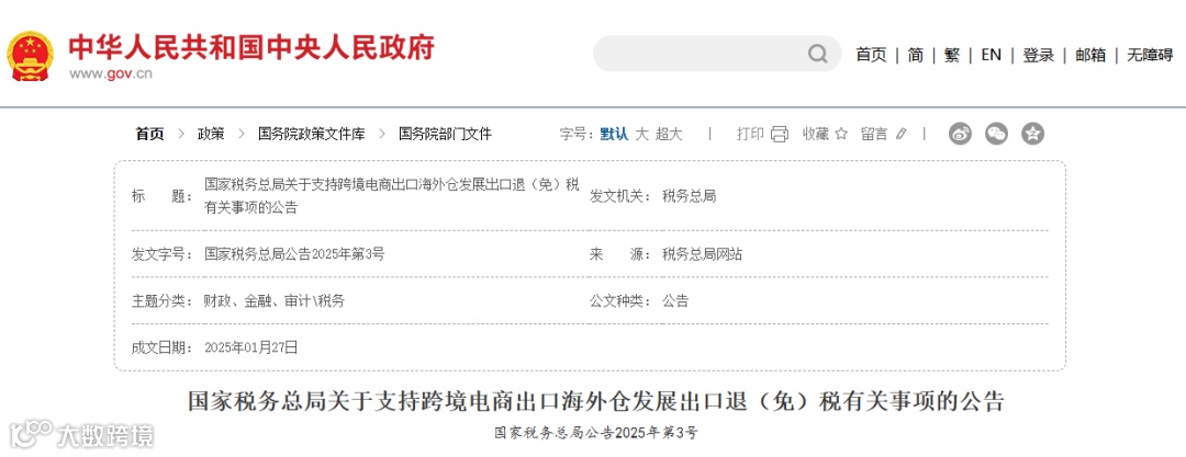 离境即退税!税务总局发文支持跨境电商出口海外仓发展