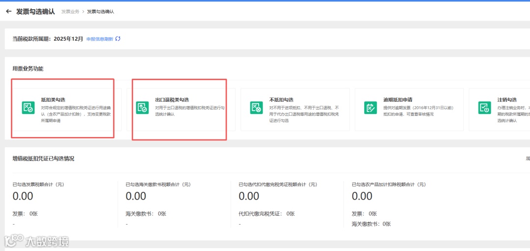 申报之前需要先去勾选认证,商贸型企业国内销售和出口是两个不同的勾选模块: