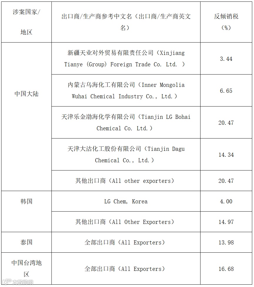 2016年11月29日,巴基斯坦对原产于或进口自中国大陆、韩国、泰国和中国台湾地区的悬浮级聚氯乙烯树脂启动反倾销调查。2018年4月25日,巴基斯坦对该案作出肯定性终裁,决定自2017年6月13日起对涉案产品以成本加运费价格(C&F value)正式征收为期五年的反倾销税,有效期至2022年6月12日。此后,巴基斯坦进行了一次日落复审调查,于2023年12月9日作出肯定性裁决,继续对上述国家/地区涉案产品征收反倾销税,其中,中国大陆出口商/生产商税率为3.44%~20.47%、韩国为4.00%和14.97%、泰国为13.98%、中国台湾地区为16.68%,措施自2022年6月8日起生效,有效期为三年。2025年6月2日,巴基斯坦对中国大陆、韩国、泰国和中国台湾地区的涉案产品启动反倾销第二次日落复审调查,案件调查期为2022年1月1日~2024年12月31日。