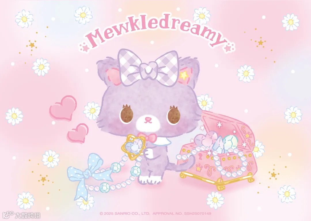 甜梦猫(MEWKLEDREAMY)是一只浅紫色小猫毛绒玩偶,被月光照射后耳朵上的星星图案会发光,并由此获得说话能力,喜欢在梦中轻声细语,充满童话氛围与治愈感。