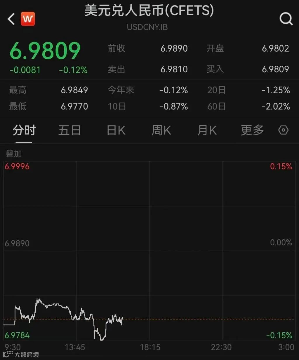 2026年首个交易日,人民币对美元即期汇率延续升值趋势。1月5日盘中升至6.9770,为2023年5月中旬以来最高水平;日间收盘报6.9806,较前一交易日上涨84个基点,创2023年5月17日以来新高。