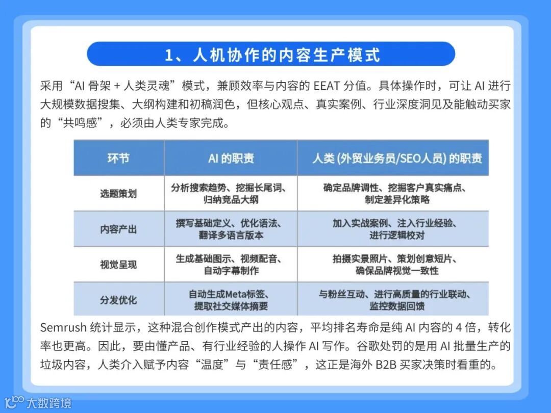 2026 年,外贸 SEO 从业者会面临诱惑:用 AI 一天生成万篇文章,但这无异于自掘坟墓。谷歌算法已能识别“内容指纹”,“全自动无感生成的垃圾内容”会被精准排除在索引库外,虽不排斥 AI 辅助,但得慎用。