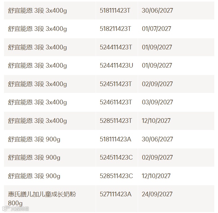 雀巢奶粉公布了受影响批次号