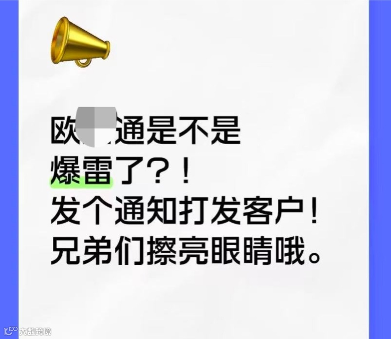“11月初发的货,到现在快50天了,物流信息完全没更新,客服消息石沉大海。有没有同行或卖家跟我遇到一样的情况?感觉又一家货代要撑不住暴雷了。”一位与欧*通有合作的客户在行业社群中焦急爆料。
